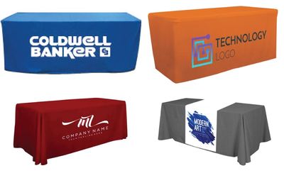 Our table throws and table covers come in wide selections of lengths, heights, shapes, cuts, colors, materials, and designs. TrafficBuilders Signs & Graphics can deliver the perfect high-quality table cover for you.